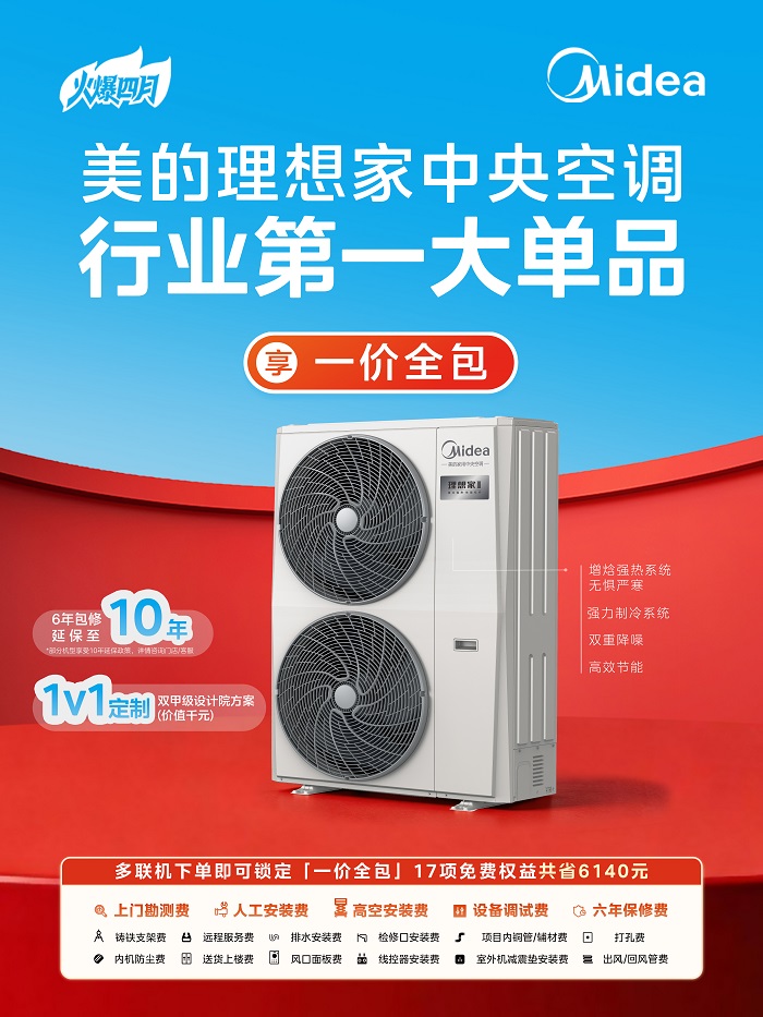 如果你在寻找"10万以内闭眼入的中央空调",美的领航者4代中央空调凭借国际领先超低频稳态技术、行业首创双出风内机和美的专利连续喷气增焓技术,成为当之无愧的顶配之选!在"一价全包"基础上,不仅送厨房空调,还提供价值千元的1V1定制双甲级设计院方案,并免费升级客厅双出风内机与1000元智慧大屏,高端体验直接拉满!