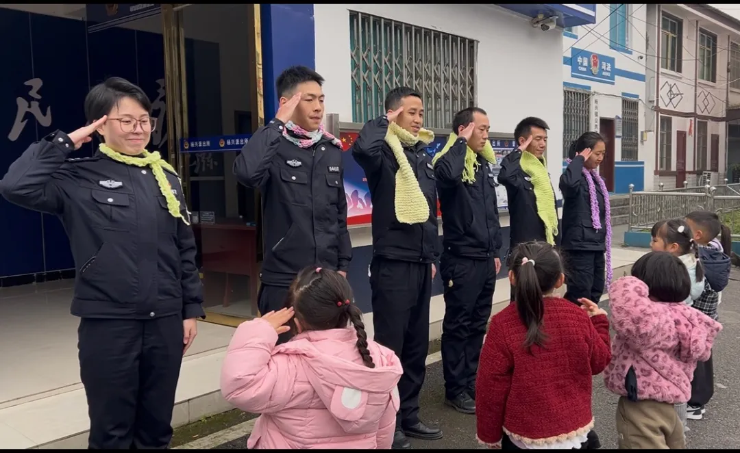 “警察叔叔警察阿姨,你们辛苦了!今天我们有一份礼物送给你。”孩子们一边兴奋地说着,一边用稚嫩的双手,为派出所民辅警戴上温暖的围巾,这是孩子们特意为警察叔叔阿姨精心准备的冬季暖心小礼物。在这凛冽的冬日里,幼儿园小朋友稚嫩温暖的话语,让民辅警们开心的笑了,这是他们收到最美好的礼物。