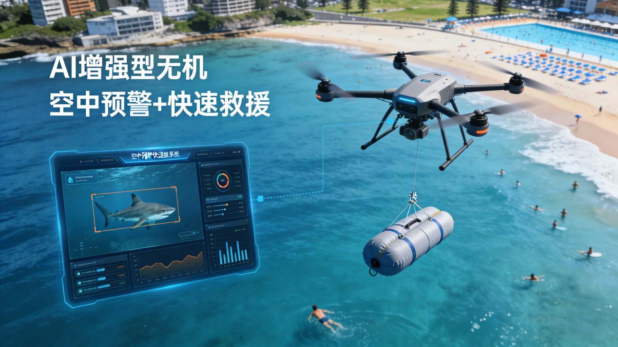 1. AI增强型无人机监测 这是新南威尔士州重点推广的技术之一,自2016年起便投入试用,2018年起与当地冲浪救生组织深度合作。无人机飞行高度超60米,单次可巡逻40分钟,由专业救生飞行员操控,实时拍摄海域画面并传输至智能分析系统。早期人工识别准确率约60%,经AI算法优化后,危险鲨鱼识别成功率提升至80%-92%,能精准区分大白鲨、虎鲨与海豹、大鱼等非威胁目标,还可应对风浪、浑浊水域等复杂场景。除监测外,无人机还具备应急响应能力,可向遇险者投送充气漂浮装置,形成“空中预警+快速救援”的双重防护,且对海洋生物无任何干扰。
