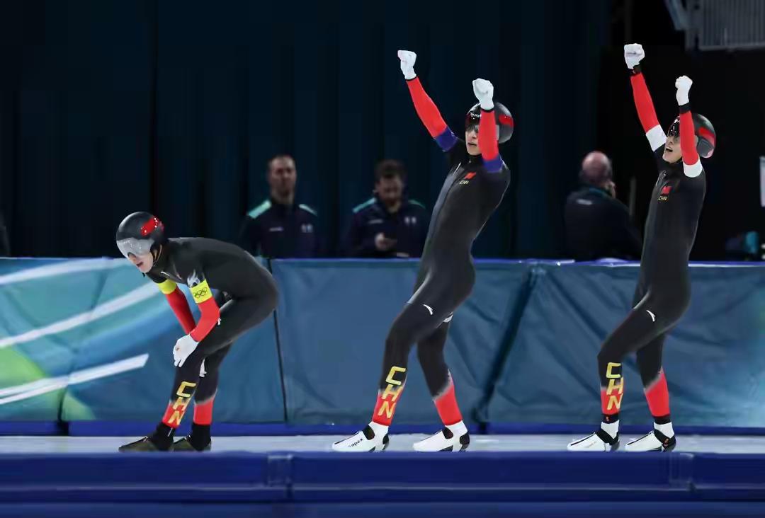 比赛进入中段,是体能消耗最大、也是意志力最受考验的阶段。中国队的三位选手紧紧跟随,彼此之间的距离保持得近乎完美。他们利用风阻原理,轮流领滑,每一次换位都流畅精准,仿佛是一个整体在冰面上飞行。这种默契,是无数次训练磨合的结果,是汗水浇灌出的信任。在弯道技术上,中国队展现出了极高的水准,压弯、出弯、加速,动作一气呵成,一点点蚕食着与对手的差距,并最终在关键时刻完成了超越。