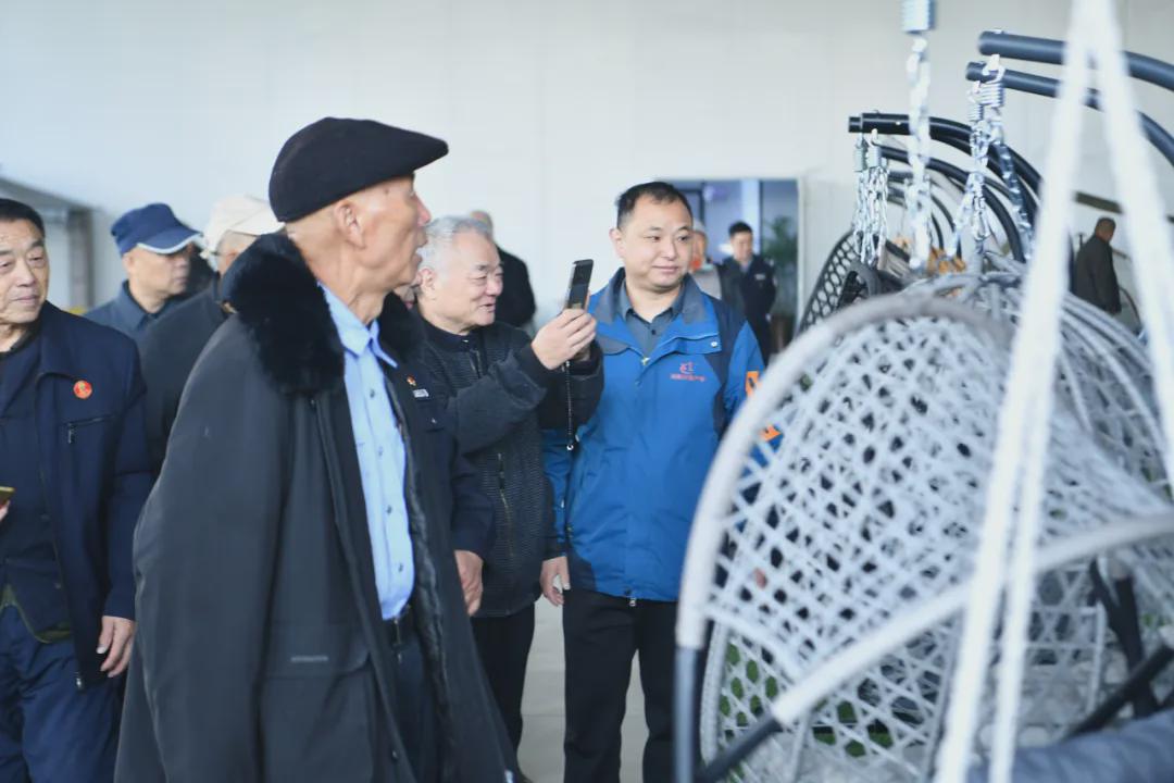 随后,大家来到行嘉户外用品有限公司产品展厅。各式用途的帐篷、户外吊床、露营桌椅和锅炉等产品制作精良、造型多样,令老同志们赞叹不已。据介绍,这里生产的帐篷、桌椅等产品广受欧美市场欢迎,工厂停车场内停满了等待发货的大型集装箱运输车,一派繁忙景象。