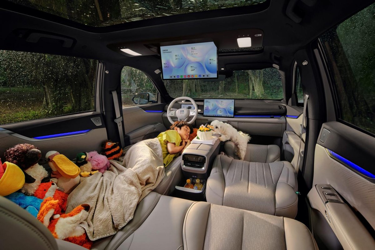 新车全系标配伊姆斯零重力躺椅与一键成床功能,前排座椅搭载加热、通风、按摩全功能,后排座椅支持 115°-125° 椅背电动调节与加热、通风功能,配合方向盘加热、电动尾门、50W手机无线充电、20扬声器智能环绕音响、多色智能交互氛围灯等配置,于细节处拉满全家出行的豪华舒适体验。