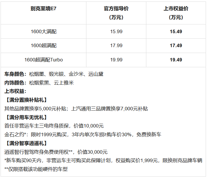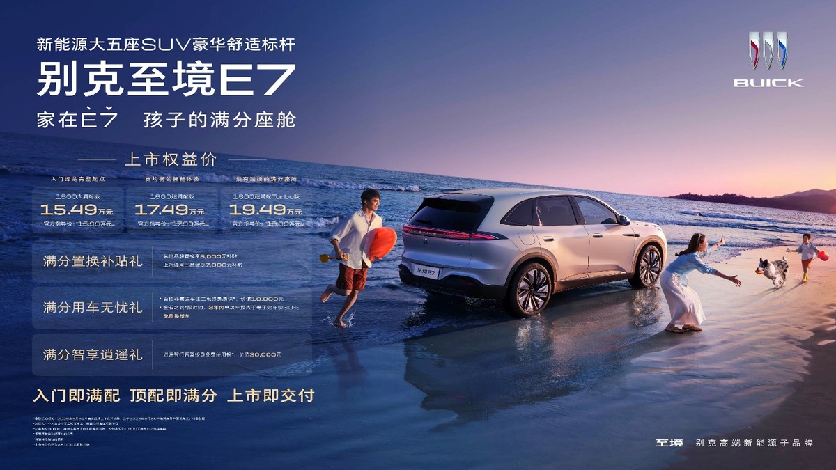 别克至境 E7 正式上市并开启交付,上市权益价15.49万-19.49万元