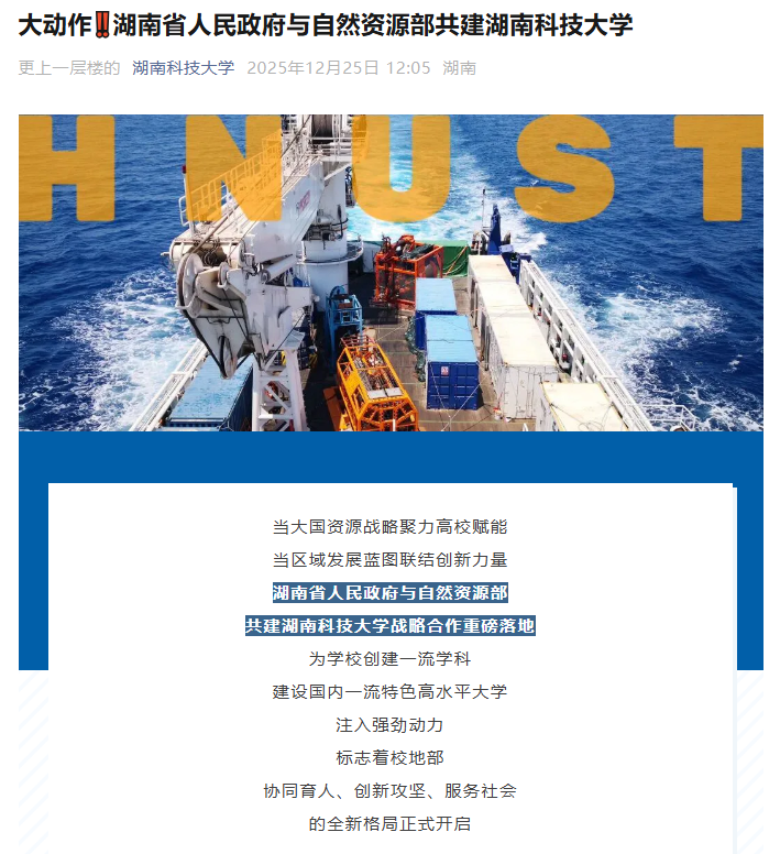 这样的身份,意味着湖南科大能获得政策、资金、资源的多重倾斜,能直接对接国家深海深地深空等战略需求,为学生搭建起更高规格的发展平台。