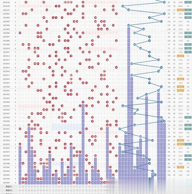 • 三区区间比:呈现1:2:3的顺势递进分布,与一等奖在各省市的均匀分布相互呼应。值得一提的是,上一期25044期出现了一区四枚号码的情况,这期逆转。本期龙头号码为02,凤尾号码为33区间跨度31,处于常规跨度范围之外。