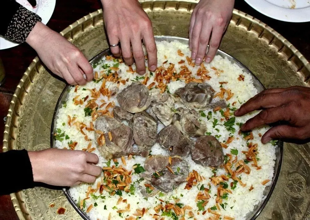 说到这里的国菜,可少不了羊肉手抓饭。黄油和各种香料炖煮的米饭,再加上软烂的羊肉,一层层堆叠在香喷喷的薄饼上,最后浇上一大勺羊奶——这滋味儿,绝对是挑战你的味蕾极限。