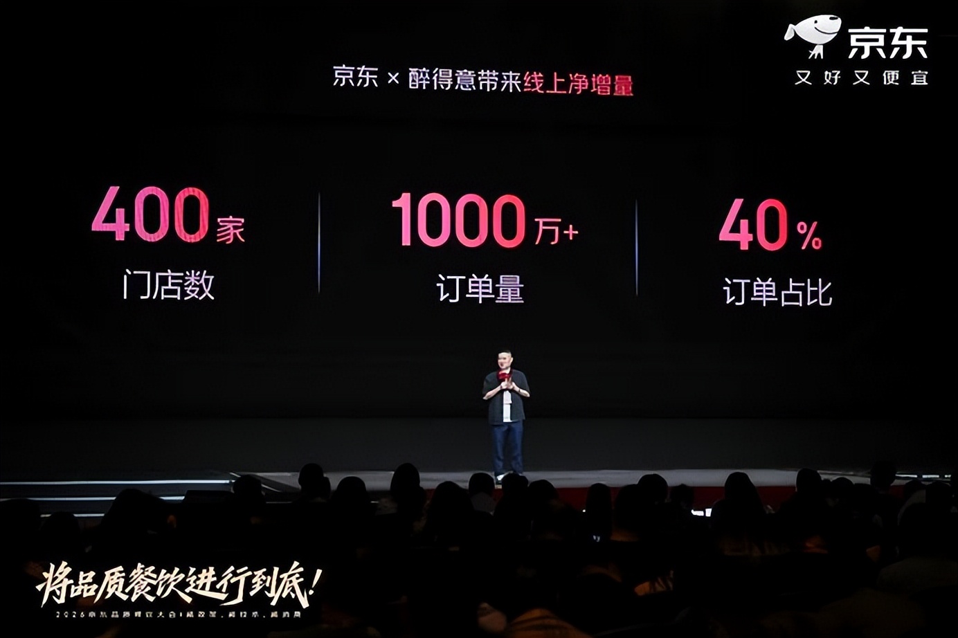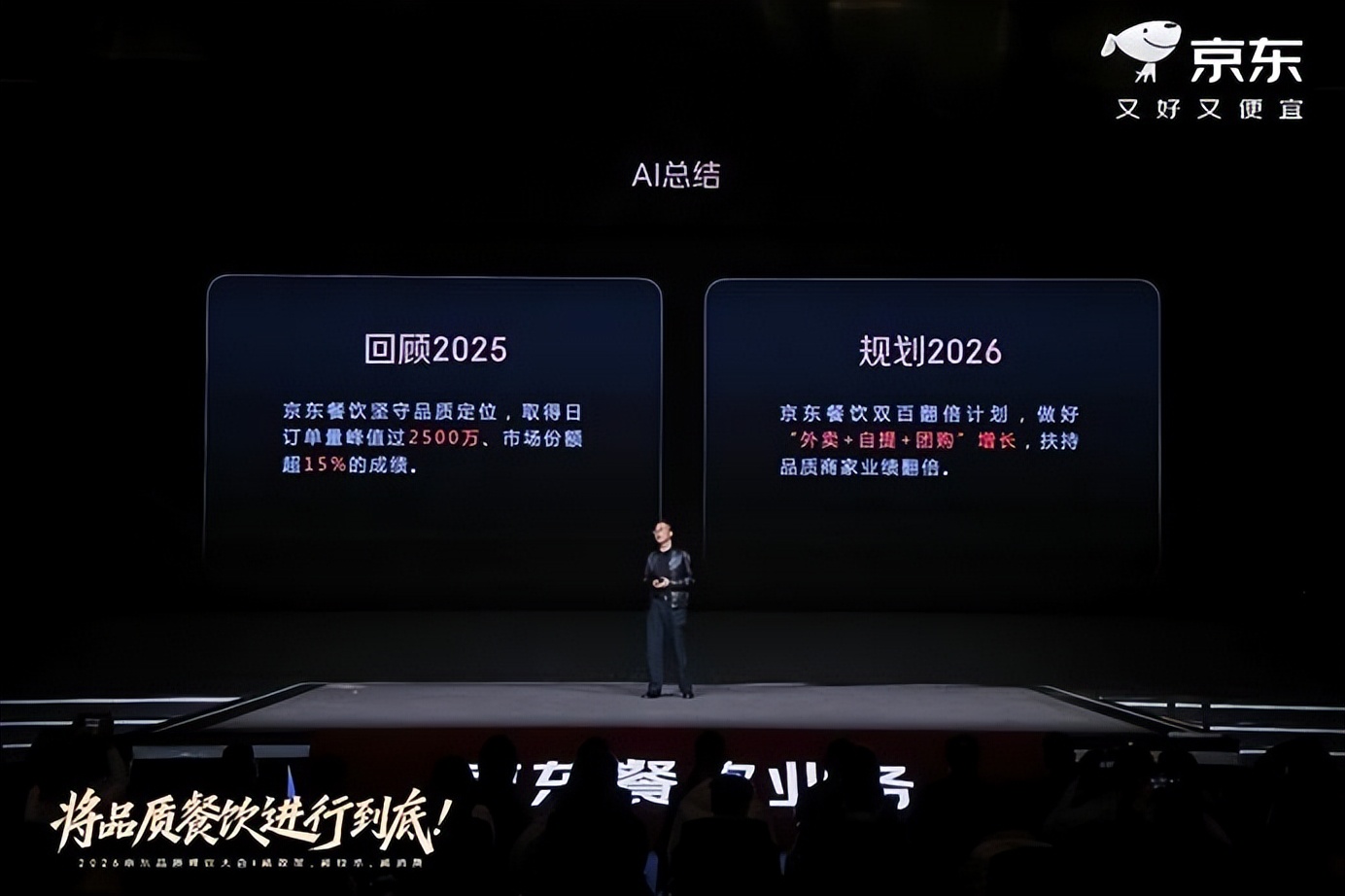 自2025年京东发起扶持商家的“双百计划”以来,已有近400个餐饮品牌在京东外卖订单量突破百万单。京东品质餐饮大会现场宣布,2026年正式启动“双百翻倍计划”,从“外卖”走向更广阔的“餐饮”,全面深化“外卖+自提+团购”餐饮全场景精细化运营;基于“服务、产品、品牌”三大共建,扶持更多品质餐饮商家2026年业绩翻倍,共赢增长。