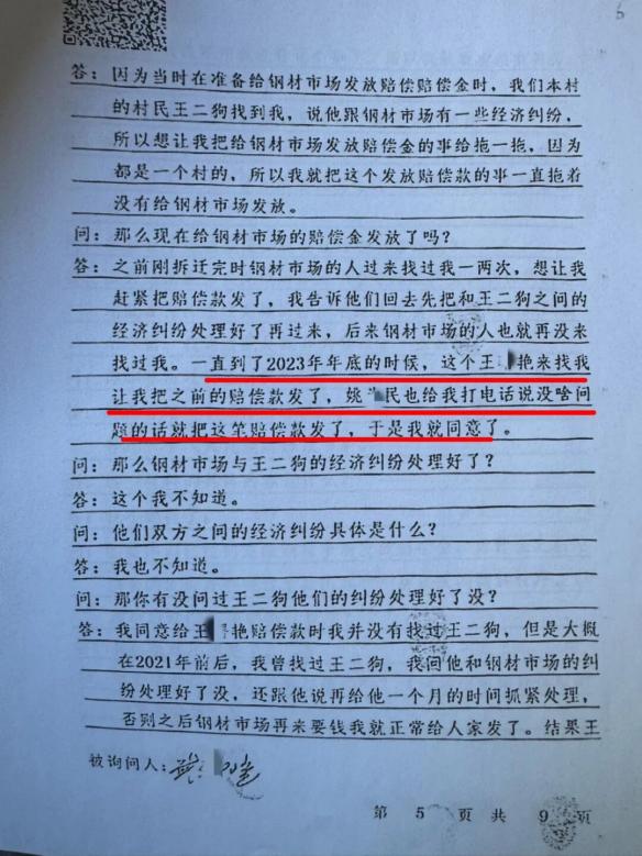 更为吊诡的是,宏图公司相关人员在询问笔录中提及“受姚某民等领导指示发放补偿款”。据王先生反映,姚某民时任街道办书记,现已提拔为副区长,但其当时并不分管拆迁工作,却全程插手协调、催促放款。如此反常的干预行为,是否存在违规违纪问题,仍有待权威部门深入彻查。