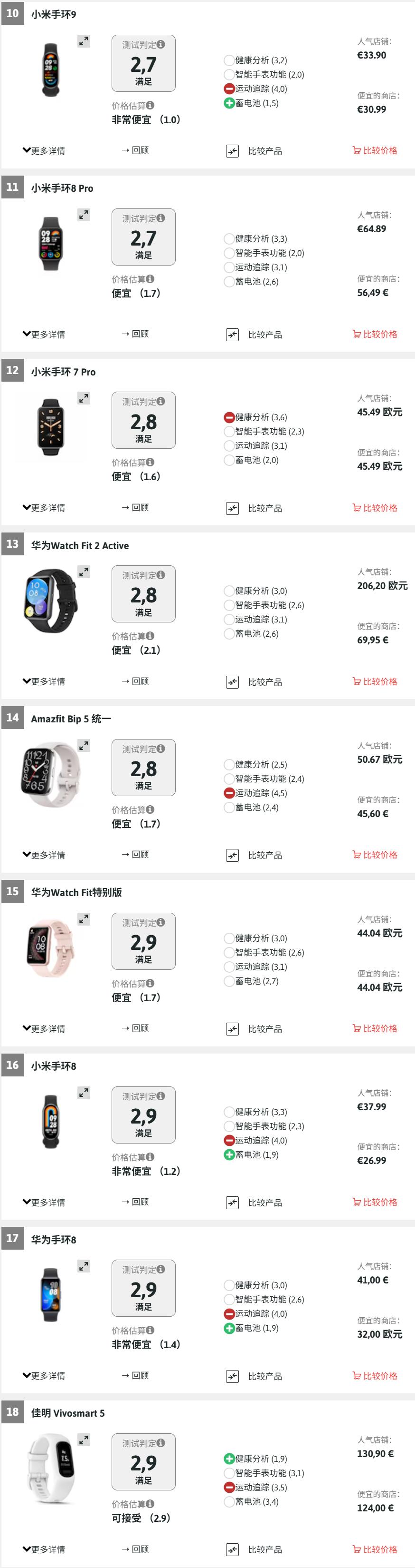 136 欧元第9:小米智能手环 10,物美价廉之最