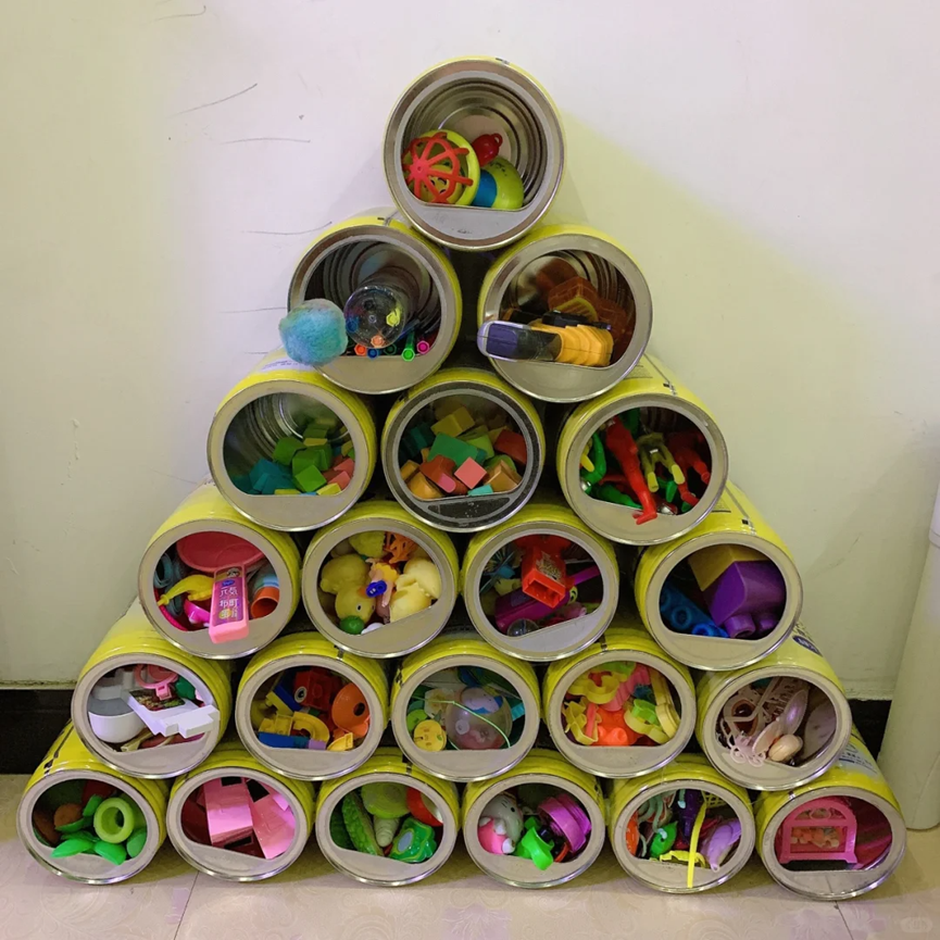 除了可以将奶粉罐改造成玩具收纳架以外,