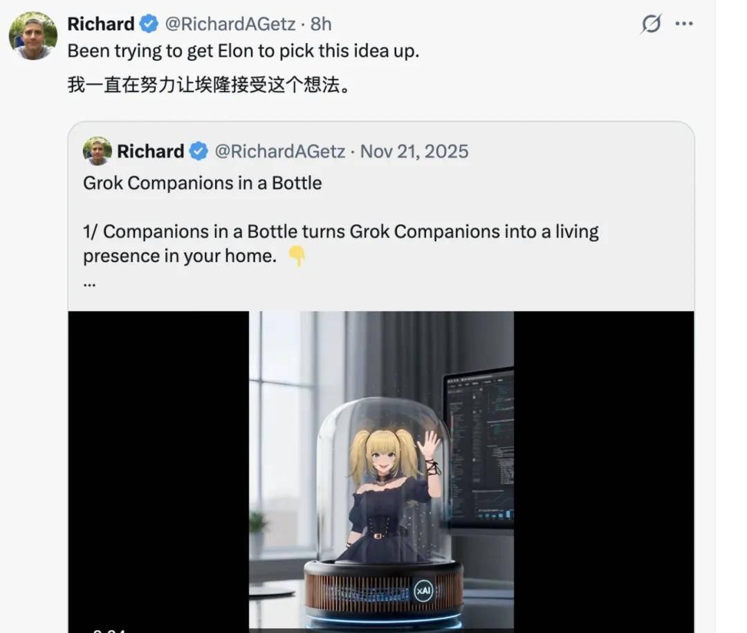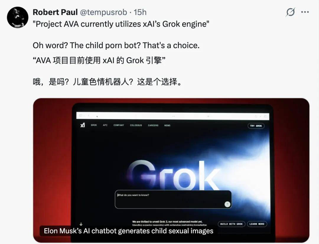 另外,有意思的是,目前 Project Ava 形象各异的背后共用一个「灵魂」,就是由马斯克 xAI 的 Grok 大模型驱动,而这一点,也让大家「又爱又恨」……