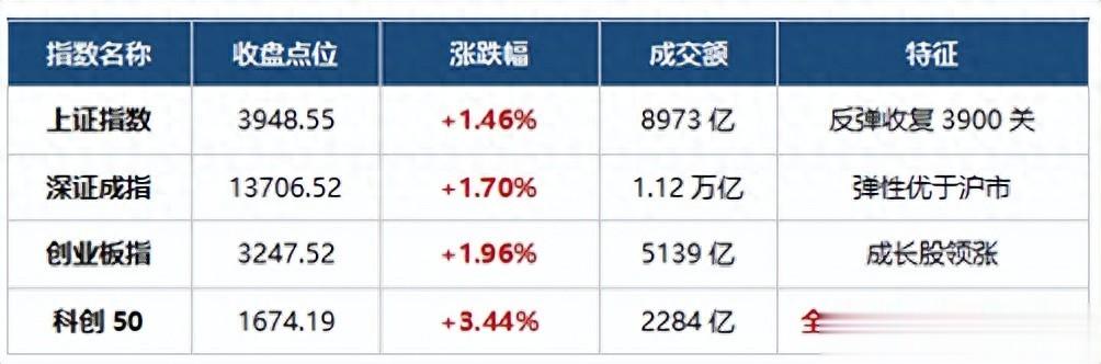 科创50单日大涨3.44%,远超大盘均值,全场最强。这反映出北向资金或机构资金在半导体、医药研发(CRO)等科创方向集中流入。创业板指(+1.96%)也强于主板,表明本次上涨的核心逻辑是估值修复+成长溢价重定价。