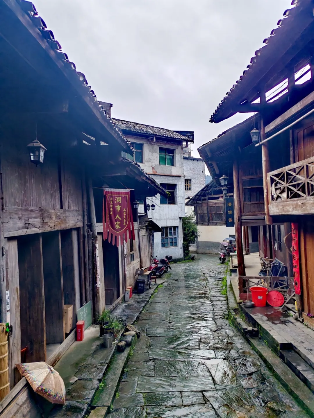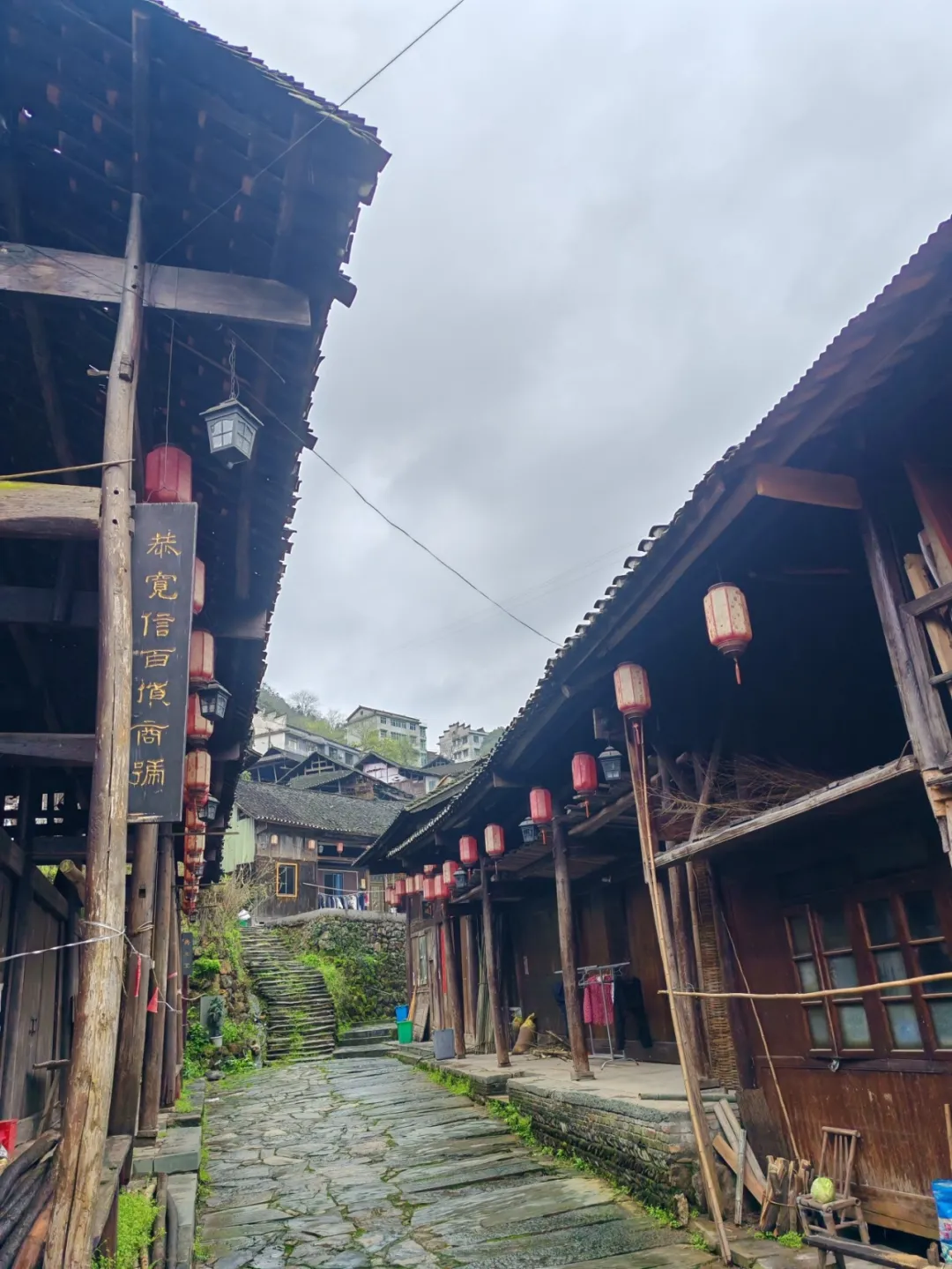 几百米长的青石板路,依山势高低起伏,两旁是湘西山里常见的双层穿斗式木构建筑群,灰砖青瓦,古韵盎然。老街鼎盛时期,运输茶叶的竹筏最多时达两百多条,商铺如林,商贾云集,马帮驼铃不绝于耳,盛况空前。走在老街上,一块块青石板被岁月磨得光滑发亮,两旁的木板屋历经风雨依旧挺立,你仿佛还能听到昔日马帮走过的蹄声和商贩的吆喝。