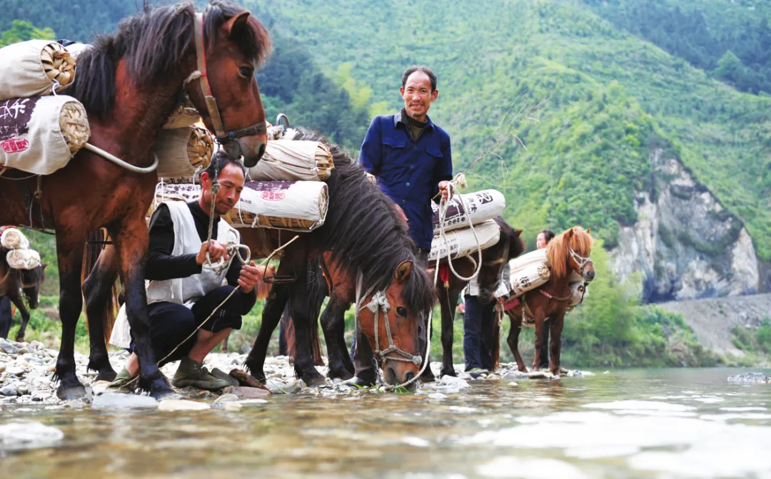 山里行路,免不了打尖歇脚。黄花溪村至今保留着长排木屋古歇火铺,依山就势而建,是典型的穿斗式木结构。当年,茶商马帮走到这里,都要停下来歇歇脚、喝碗茶、喂喂马。如今这些老木屋经过修旧如旧的修复,廊柱重新立得笔挺,映出当年的繁华。
