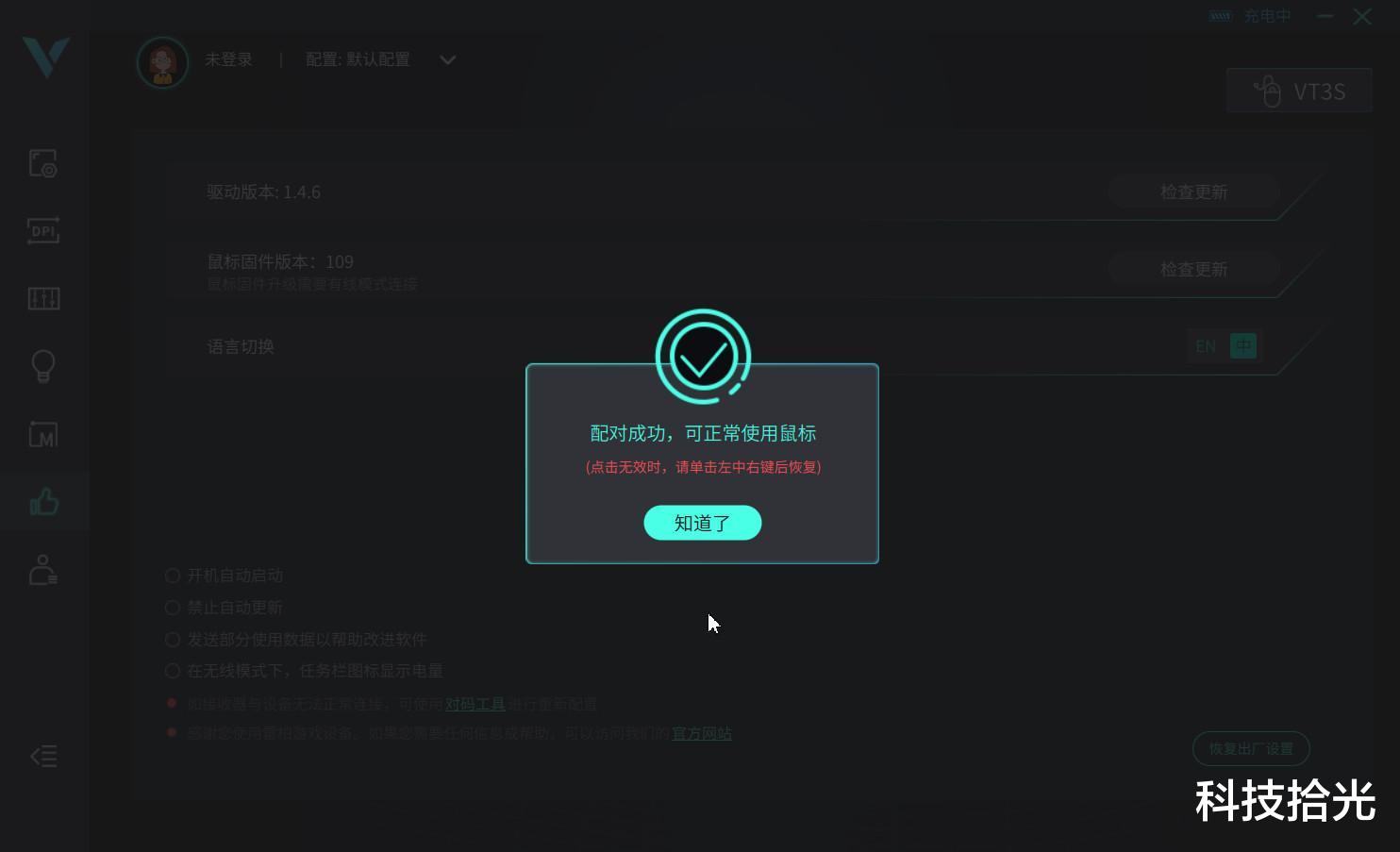按照步骤,最后开关鼠标三键同按,就可以看到页面提示4K接收器配对成功。这个时候再回到参数设置中,就可以看到驱动中展示可以支持125Hz~4000Hz的驱动回报率选项了。