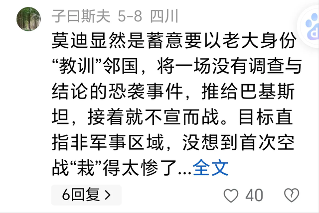 于是,借着所谓的“恐怖袭击”事件,在没有调查与证实的情况下,甩锅巴基斯坦。更是在5月7日凌晨,悍然发动对巴基斯坦的大规模袭击!