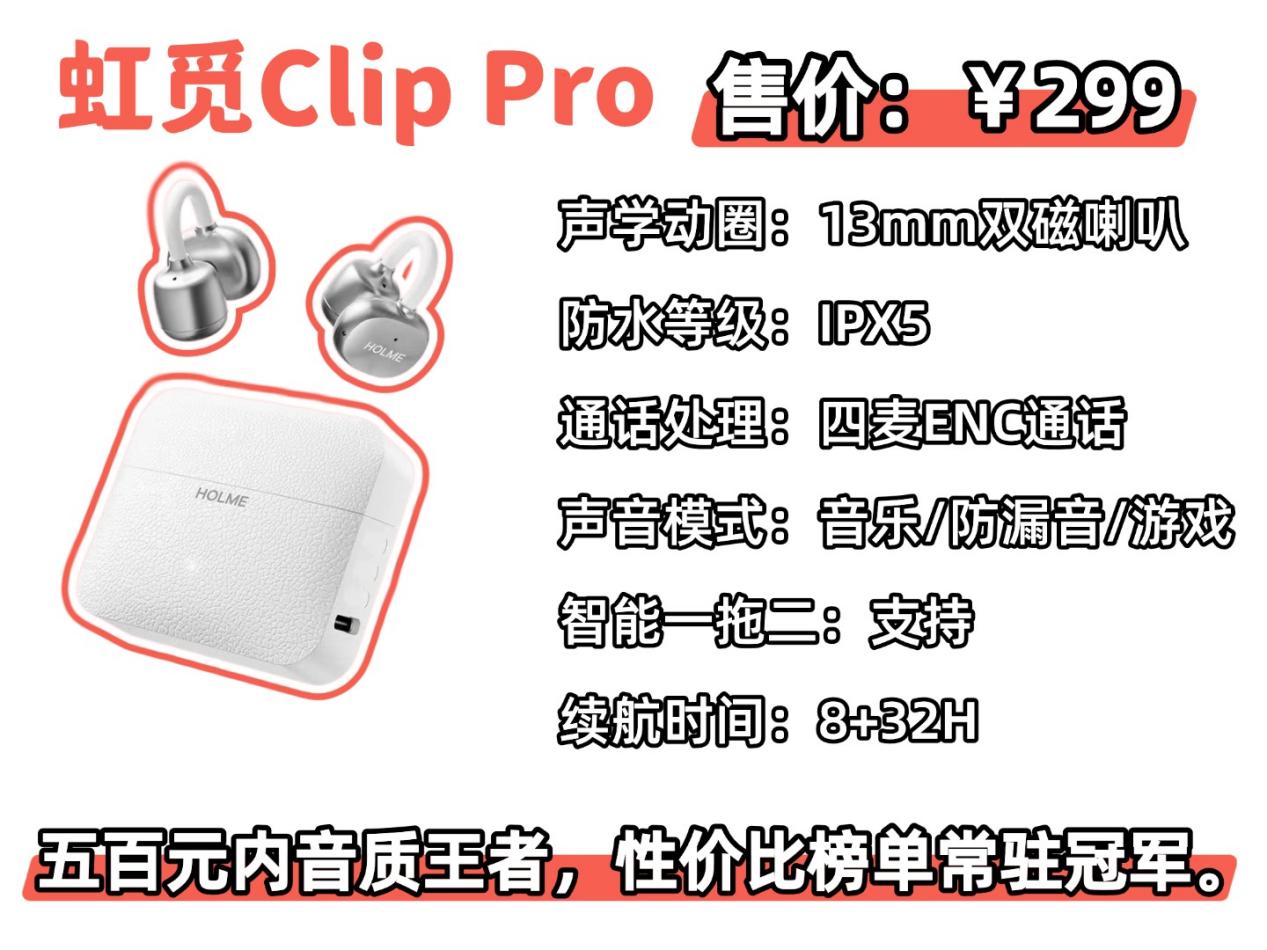 性价比耳夹式耳机推荐虹觅 Air2小云夹价格:169 元推荐理由:2026 年挑百元档耳夹,音质等各方面比同价位的都要出彩,性价比拉满了。