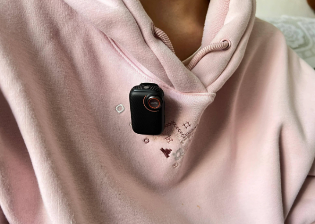 ②隐形佩戴设计:发射器仅重11.8克,采用微型纽扣式设计,无外露LOGO,搭配磁吸背夹,佩戴后隐蔽不突兀。长时间拍摄无坠领不适,适配各类穿搭与出镜场景。