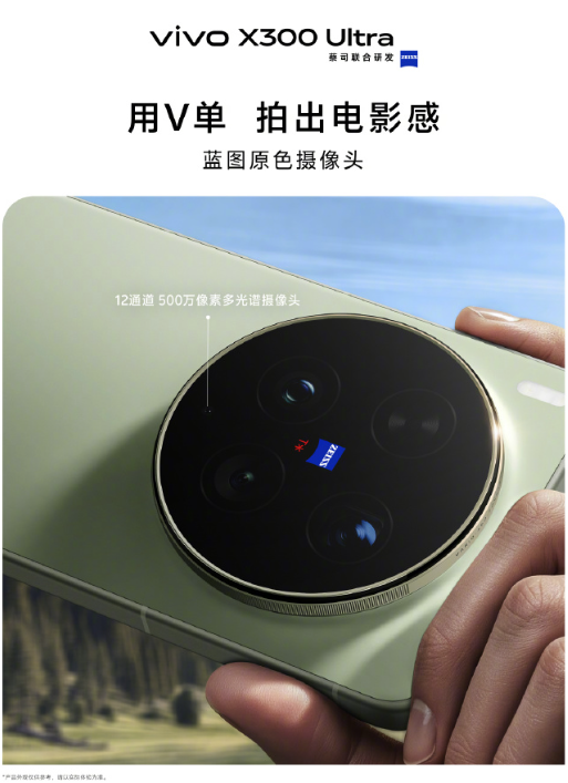 色彩表现方面,从“蓝图原生色彩”“经典胶片色彩”等官方描述中可以看出,vivo在影像风格上进一步强化了真实与艺术的平衡。相比以往单一风格输出,这一代产品更强调“所见即所得”,同时又提供多样化色彩选择,满足不同用户的审美需求。外观设计方面,这一代X300系列延续了“专业V单”的设计语言。从“悬浮水滴冷雕玻璃”“云缎砂玻璃背盖”等描述中可以看出,整机在质感与手感上都有明显提升。尤其是“胶片绿”配色的加入,不仅强化了影像旗舰的调性,也更具辨识度。
