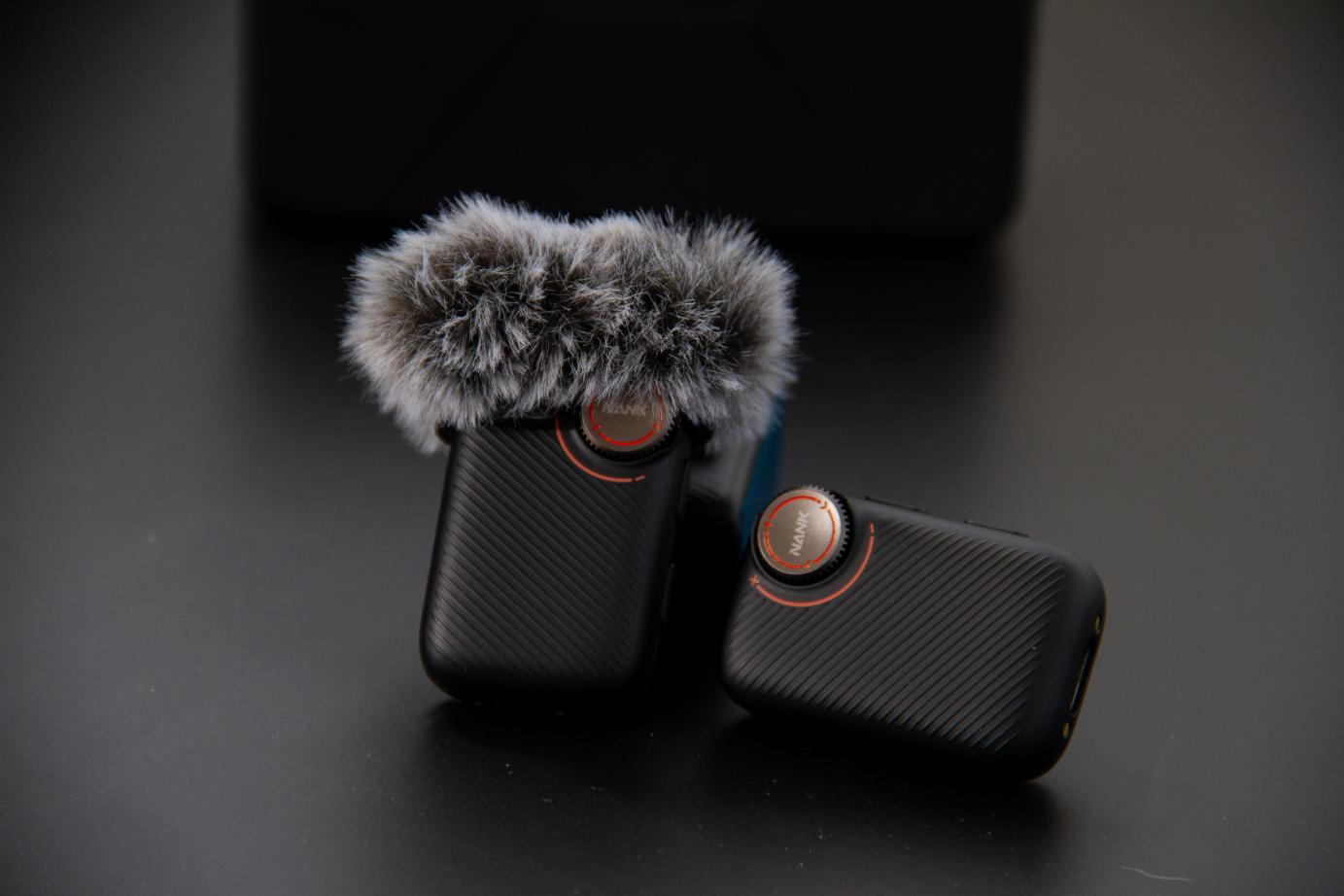 打开南卡Qmic麦克风的包装盒,瞬间就让人感受到它与众不同的专业态度。配件十分丰富:除了两枚麦克风发射器、一个接收器和充电仓外,还附送了Lightning和Type-C转接头、3.5mm音频线、两副监听耳机、防风毛绒罩以及翻毛收纳袋,“一站式”配齐,避免二次消费。
