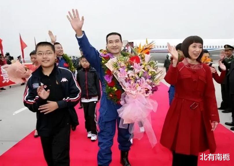 翟志刚出舱时,妻子张淑静就在一侧温柔地看着他,儿子翟天雄直接拿着一大束捧花与父亲拥抱,这位航天英雄这才摆脱身体失重的感觉,觉得自己总算回到了地球,回到了家人的怀抱之中。