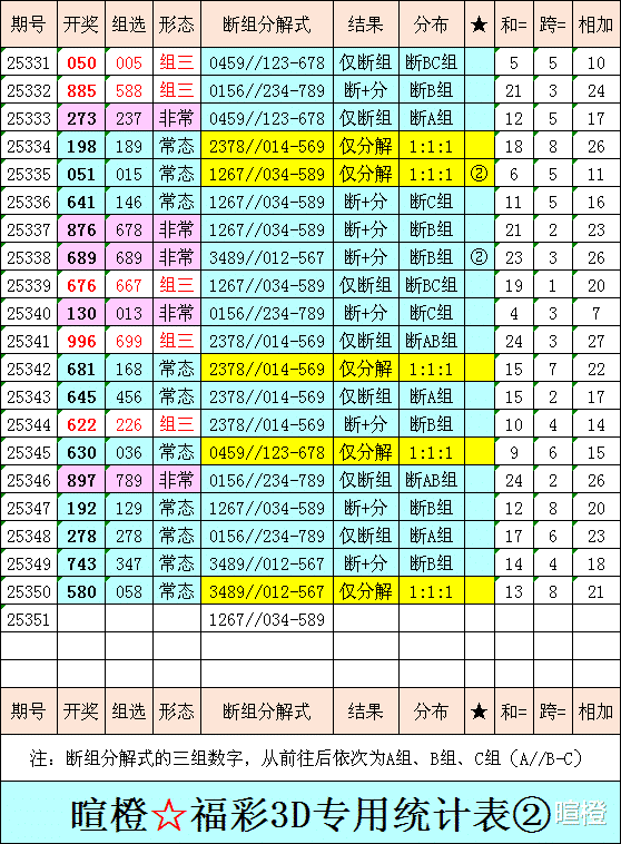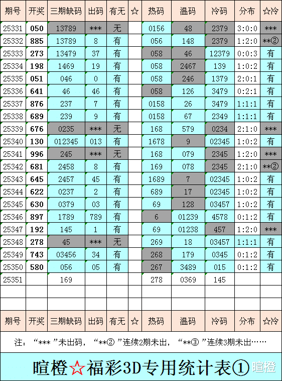 25351期:暄橙福彩3D综合条件(告别2025,迎接2026)
