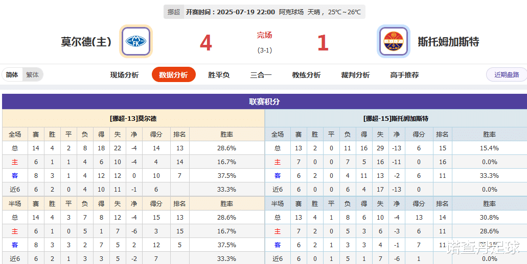 对阵背景:这是1场挪超的对决,对阵双方主客场战绩对比114vs204,都比较差。双方直接往绩交手712,主队虽然整体领先,但是近来交手战绩不佳,尤其最近交手,还输给了本场的客队,再加上双方近来战绩对比217vs118,都同样很差,因而本场比赛的筹码倾向性并不明显。