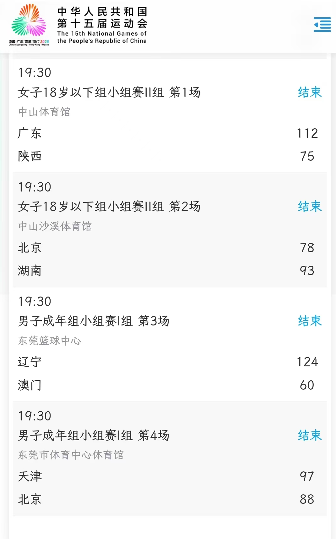 I组——1、辽宁2胜净胜114分;2、天津2胜净胜57分;3、澳门2负净胜-112分;4、北京1负净胜-9分;5、吉林1负净胜-50分。