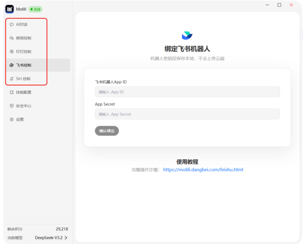 官方文档显示,更新后的Molili成为了国内首款全面支持微信、钉钉、飞书及Siri控制的AI智能体。这意味着用户不需要改变原有的软件使用习惯:在办公场景中,可直接在钉钉或飞书的对话框内向Molili发送指令,完成诸如会议纪要整理、文档信息提取或邮件自动回复等任务;在生活场景下,则可通过微信文字或Siri语音指令唤醒Molili执行自动化流程。此外,这款OpenClaw中文版产品支持多设备(如公司与家庭电脑)同时绑定,保障跨场景协同的连贯性,让智能体真正成为随时待命的效率工具。