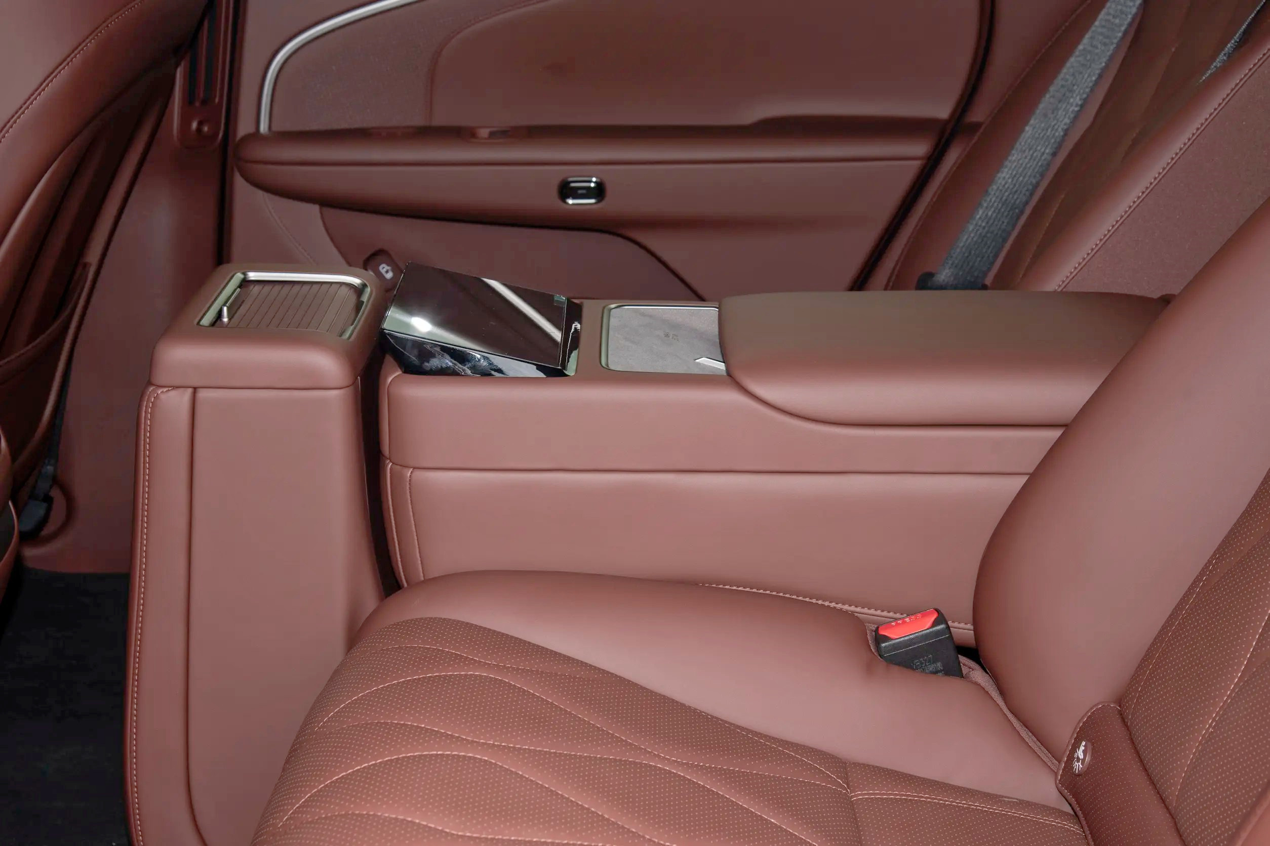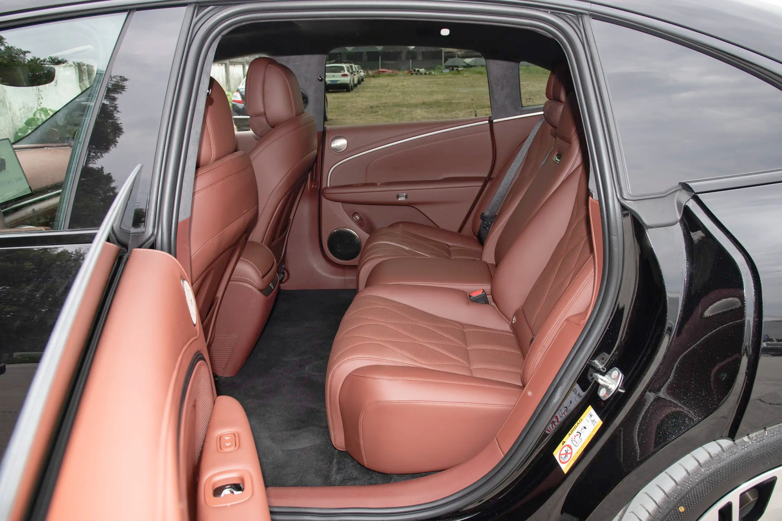 座椅部分,广汽昊铂A800虽然采用了5座布局,但看上去更像是4座布局(二排中央座椅可翻折,形成独立2座),并且座椅使用了Nappa真皮材质进行包裹。