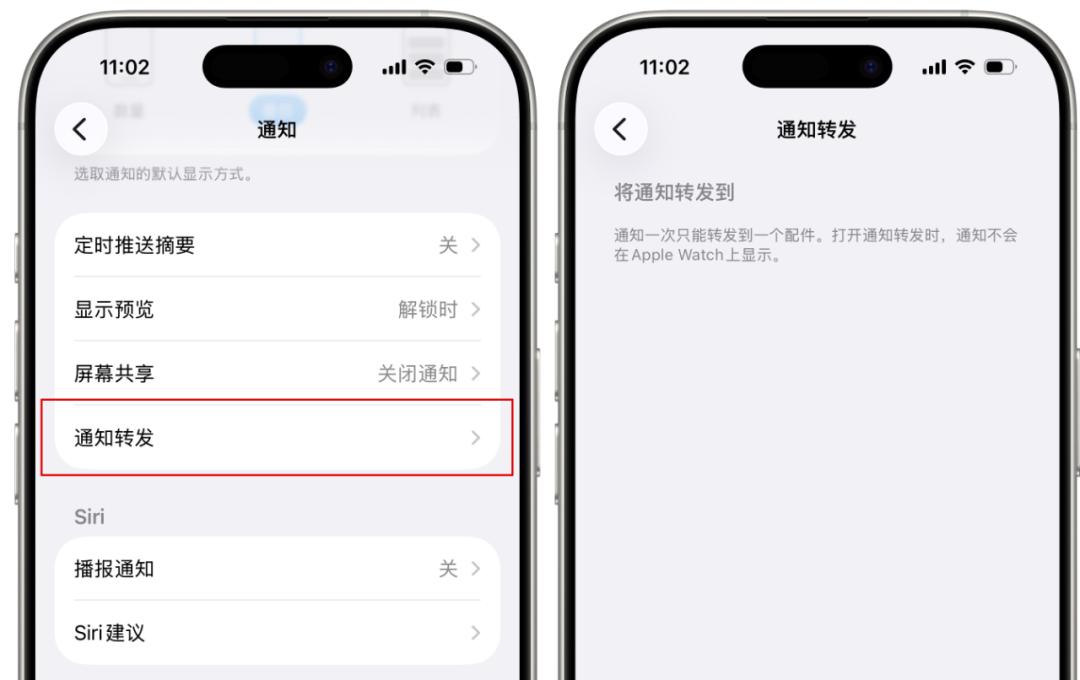 更新后,在「设置」-「通知」中,新增了通知转发选项。这个功能支持第三方智能手表可以像 Apple Watch 一样原生支持通知推送,这样就可以在其他品牌的智能手表或手环上实时查看手机消息了。