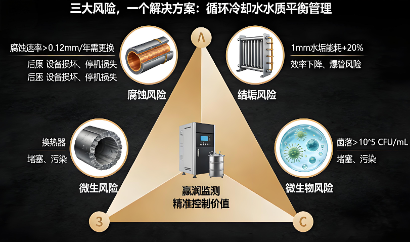 化工企业循环冷却水用量占工业用水总量的 70% 以上,水质管理不到位会引发多重连锁风险,其价值体现在设备保护、能耗控制、合规生产三大维度。