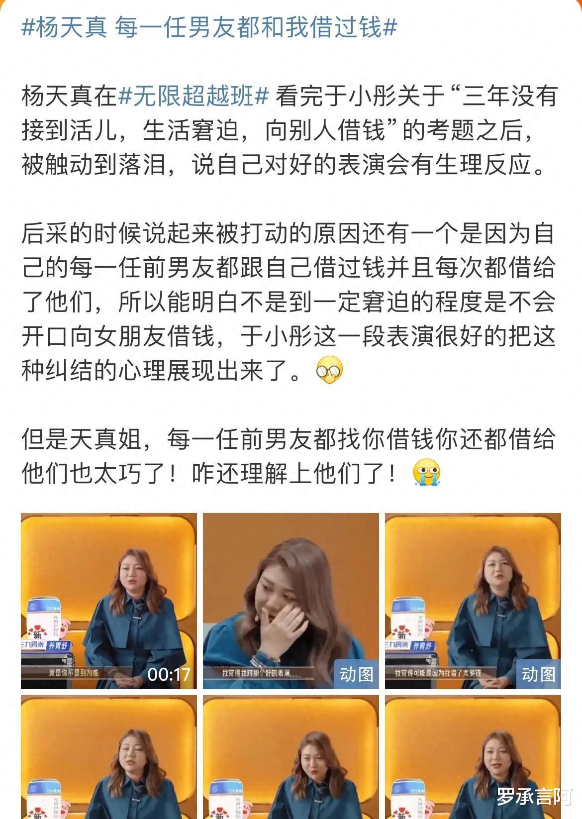 杨天真在综艺节目中谈及“借钱”话题,引发了广泛的讨论。她坦言自己曾多次借钱给前男友,这一举动在网络上褒贬不一。有人赞赏她