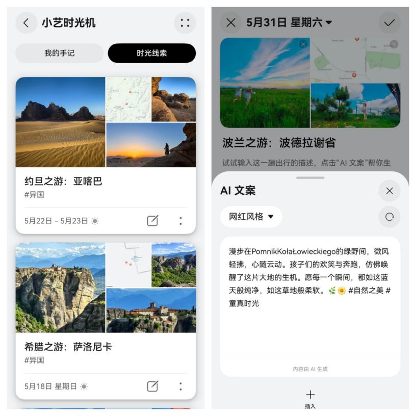 上个月,我来了一场说走就走的境外游。从约旦到希腊再到波兰。我只顾用镜头捕捉眼前的风景,完全没心思记“这是哪”“明天去哪”。结果回家后华为Pura 80给了我惊喜。在小艺App-发现-智能体市场里,我找到了小艺时光机Agent这个宝藏工具。TA就像跟在身后的“记忆捡拾者”,在我尽情游玩时,默默把散落的足迹串联了起来。