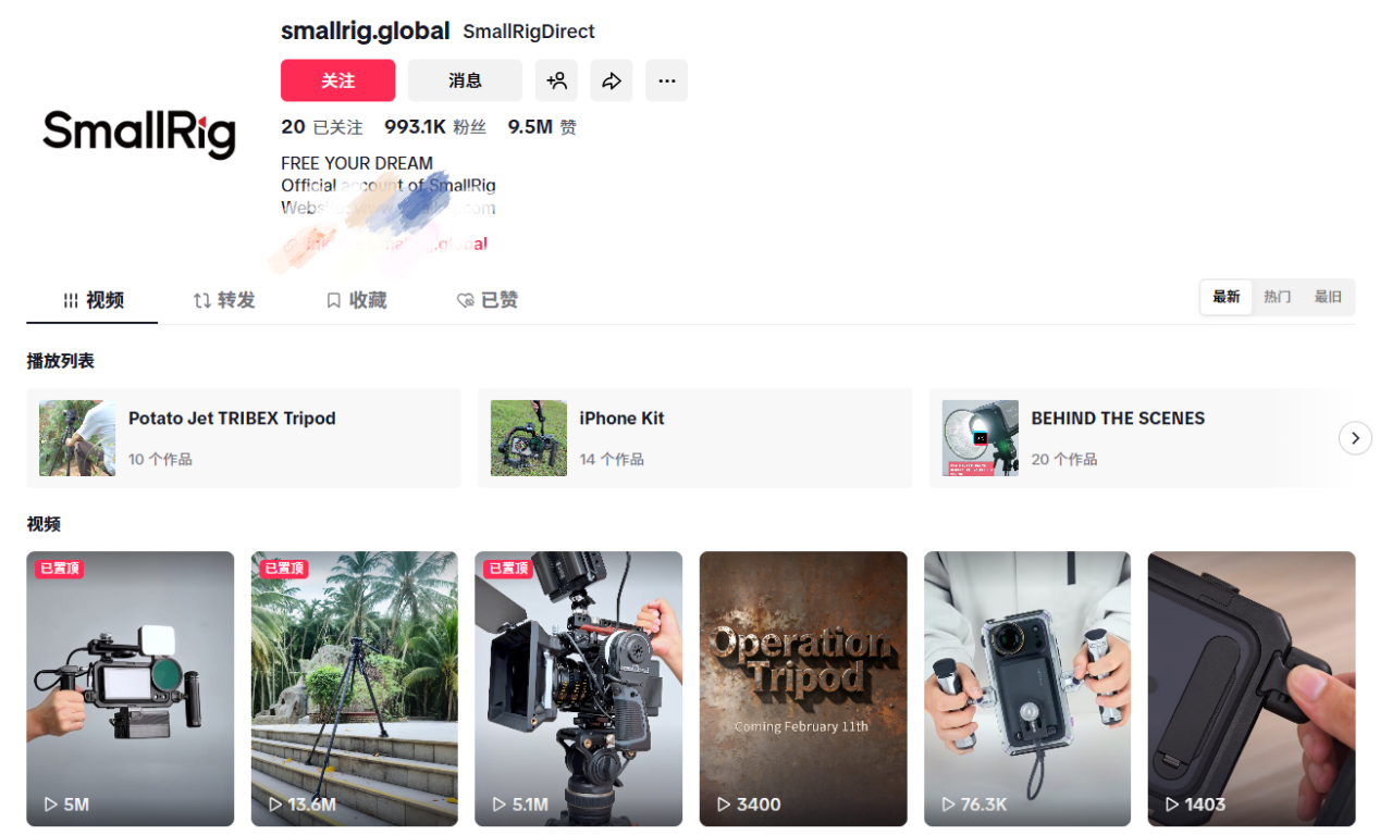 TikTok是SmallRig在海外社媒布局中最具代表性的平台。