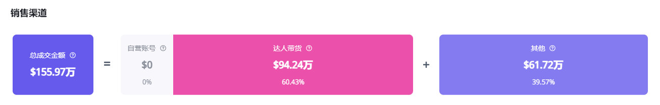 根据数据显示,SmallRig在TikTok平台的销量约为155.97万美元,其中达人带货占据了94.24万美元,几乎占据了六成以上。