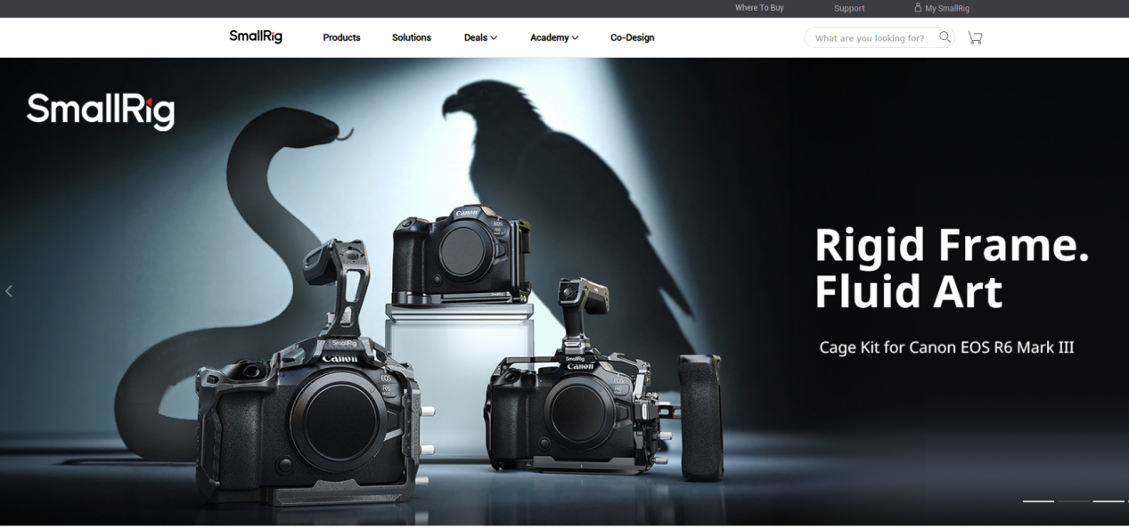 除了亚马逊和社媒,SmallRig也在布局独立站,以增强品牌资产沉淀和用户运营能力。独立站不仅承接社媒流量,还能通过邮件营销、会员体系等方式,对高价值用户进行长期运营。