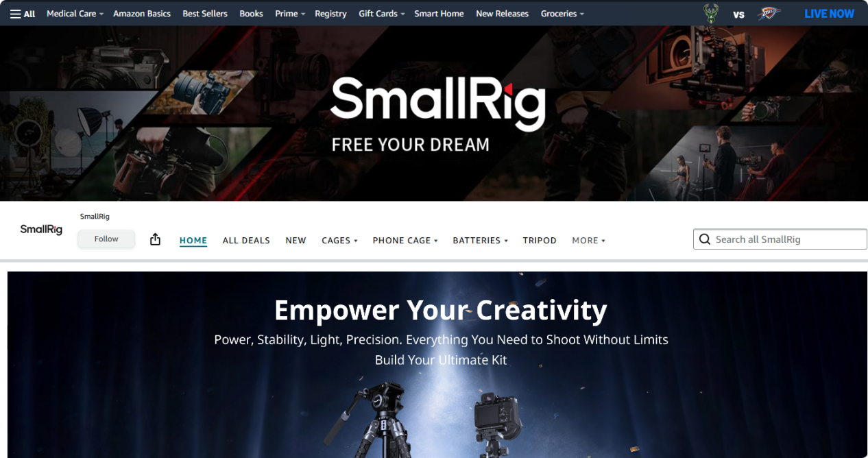与TikTok不同,亚马逊是SmallRig最早发力的平台之一。通过在美国、欧洲、日本等多个站点布局,品牌得以直接触达全球创作者,逐步建立起“专业影像配件首选品牌”的认知。