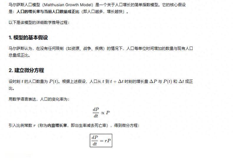 马尔萨斯人口模型推导过程声明:内容来源于网络,版权归原作者所有,转发旨在分享,禁止商业用途,若侵权后台留言。