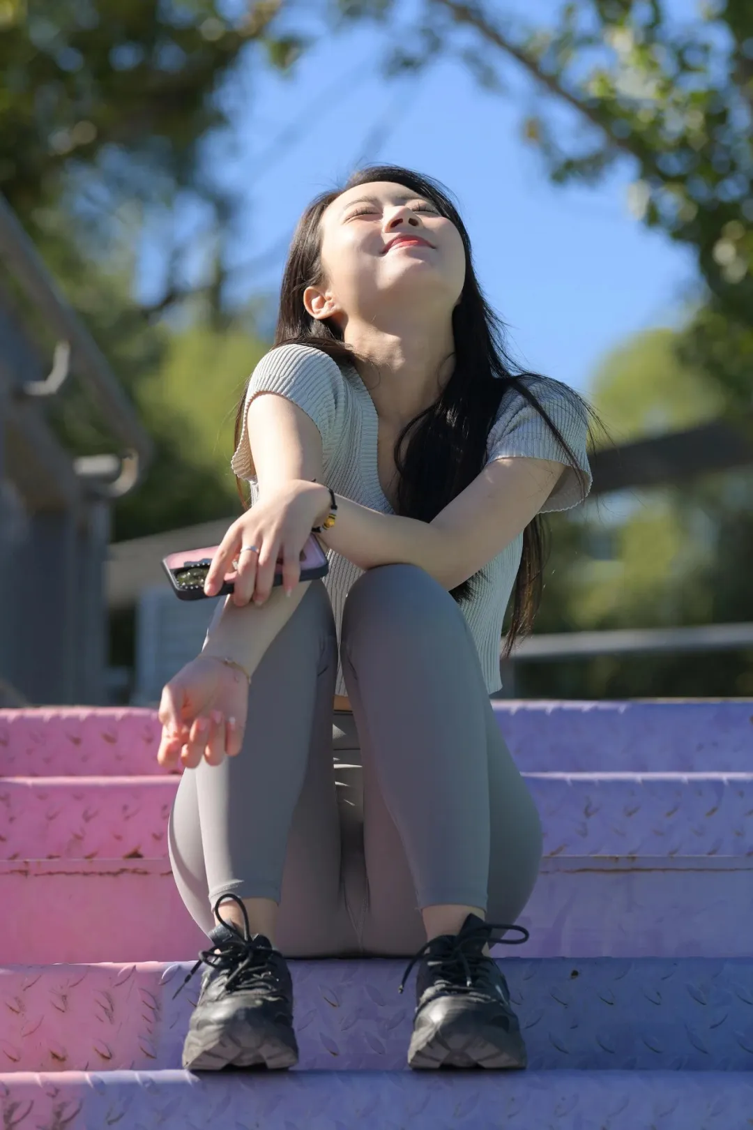 穿着瑜伽裤的她,仿佛成为了这春日里的一道亮丽风景线。她的身姿轻盈而优雅,每一个动作都充满了韵律与美感。她在小道上悠然行走,仿佛在演绎着一场精彩的舞蹈,让人忍不住驻足欣赏。她的存在,让这春日更加生动、更加美好。