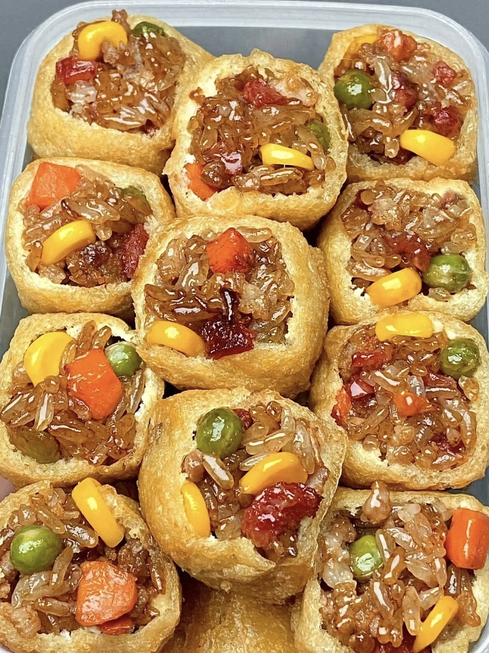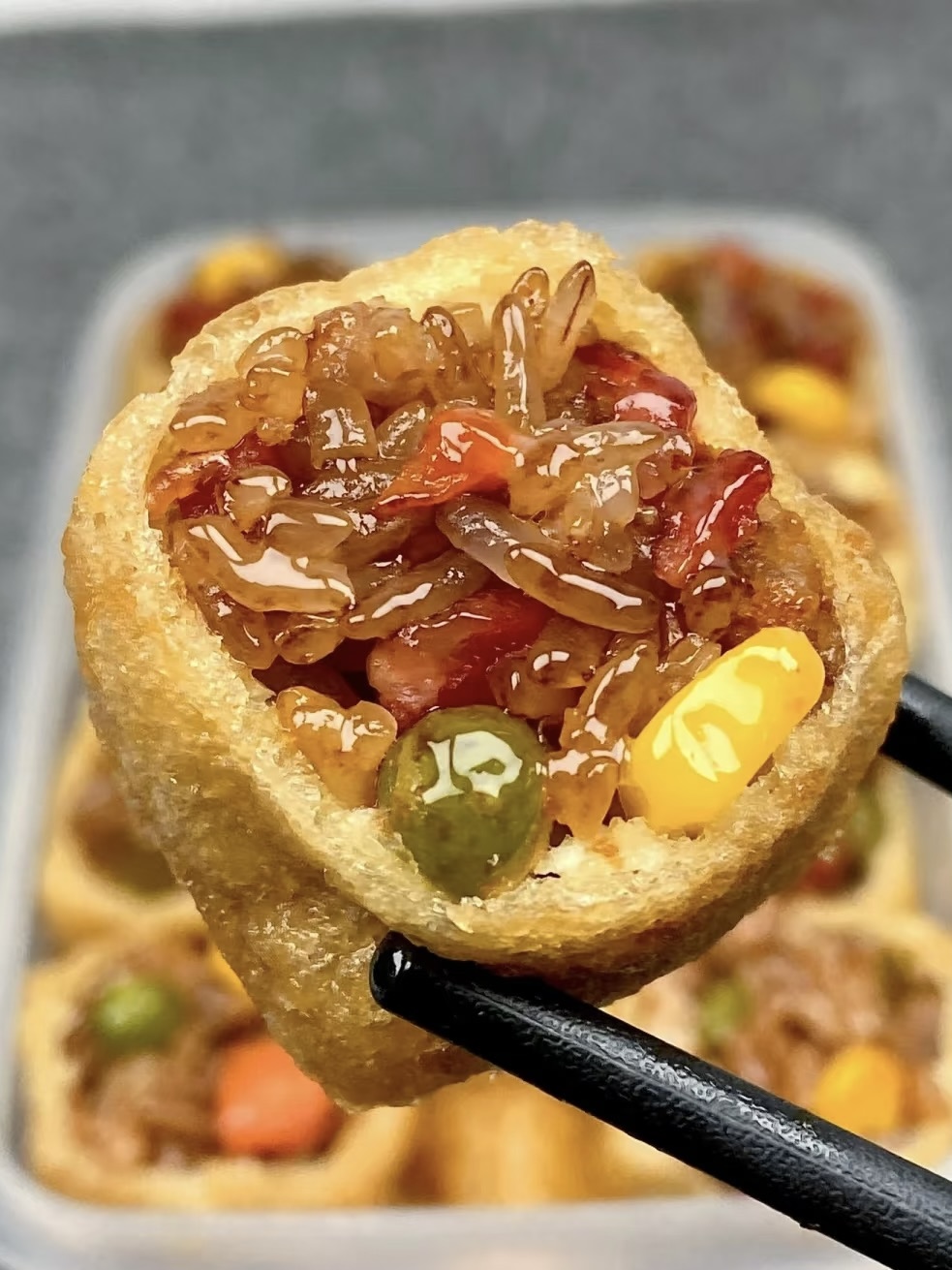 成品登场:豆泡金黄鼓胀,挂着晶亮酱汁;糯米馅奶白饱满,像一颗颗“小金砖”;葱花绿得晃眼,像给“小肉弹”点了“森林星光”。先来一口豆泡——外层吸满酱汁,内里糯到像棉花糖,轻轻一咬,肉汁在舌尖爆开;再嚼糯米馅,外层吸满酱香,内里糯到像云朵,轻轻一嚼,腊肠香混着玉米甜在舌尖跳舞;配一口白粥,汤汁渗进米粒,不知不觉碗底朝天;空口吃也过瘾,鲜到手指都想舔干净。