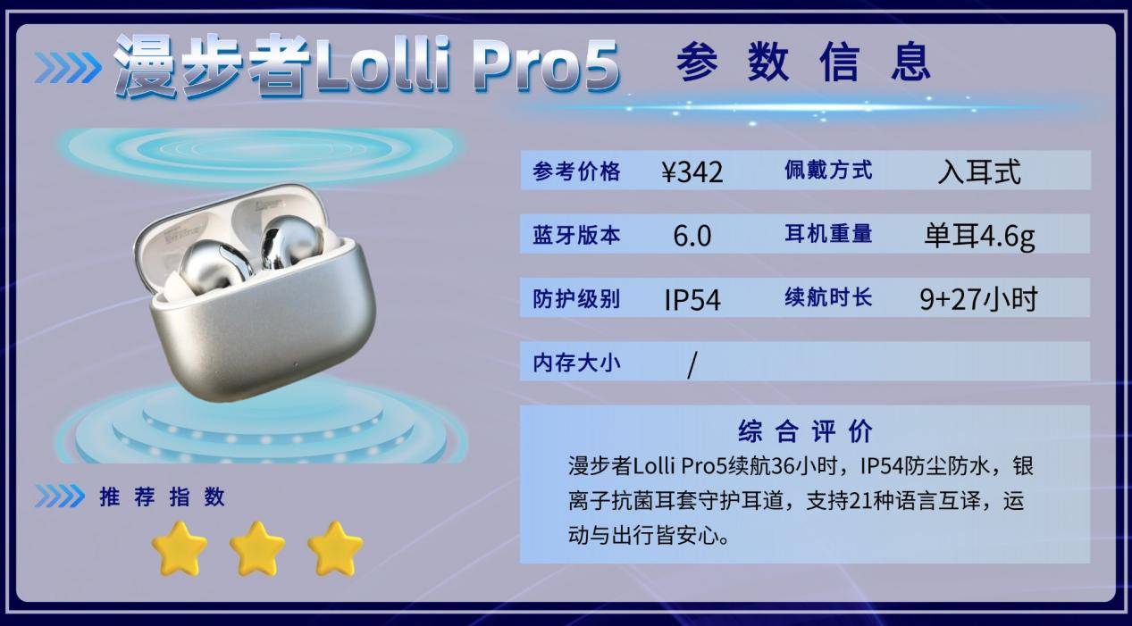 漫步者Lolli Pro5在轻运动和日常使用中表现稳定,佩戴舒适、续航充足、防汗防水到位。但对于高强度运动或追求极致音质的人来说,稳固性和音质表现有限。