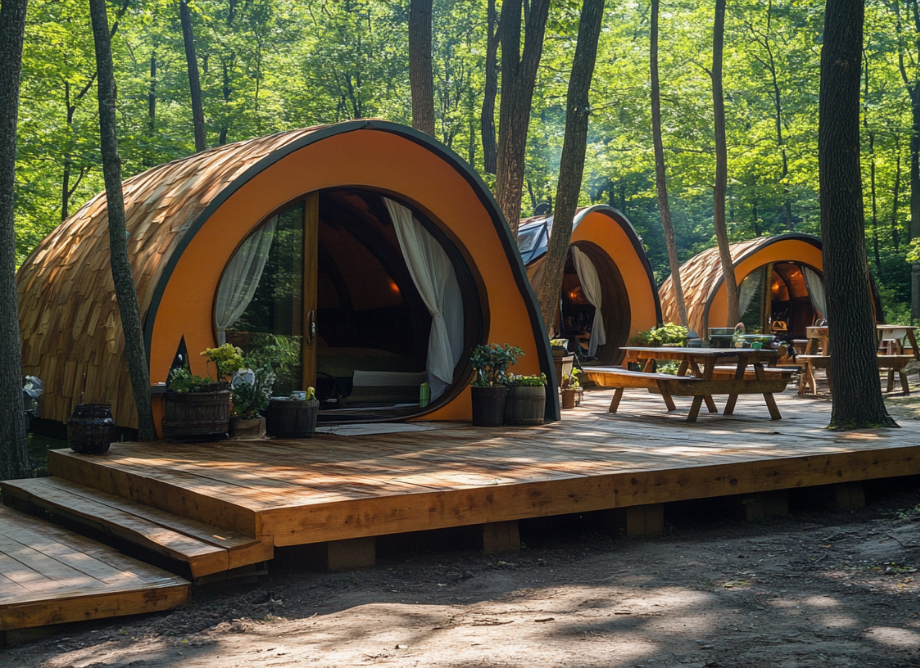周五下班后,无需长途跋涉,只需怀着一颗期待的心,向着民宿所在的方向出发。当你抵达时,暮色温柔,营地被夕阳的余晖镀上一层金边。民宿错落分布在翠绿的草坪上,四周是连绵的青山与茂密的树林,仿佛是大自然特意为你打造的秘密基地。