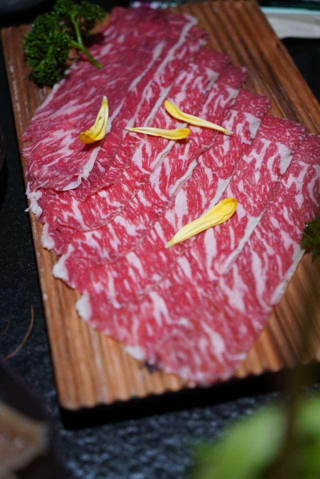 M5谷饲羽下肉,涮几秒就够,肉香足又嫩,泡菜汤底更提鲜。