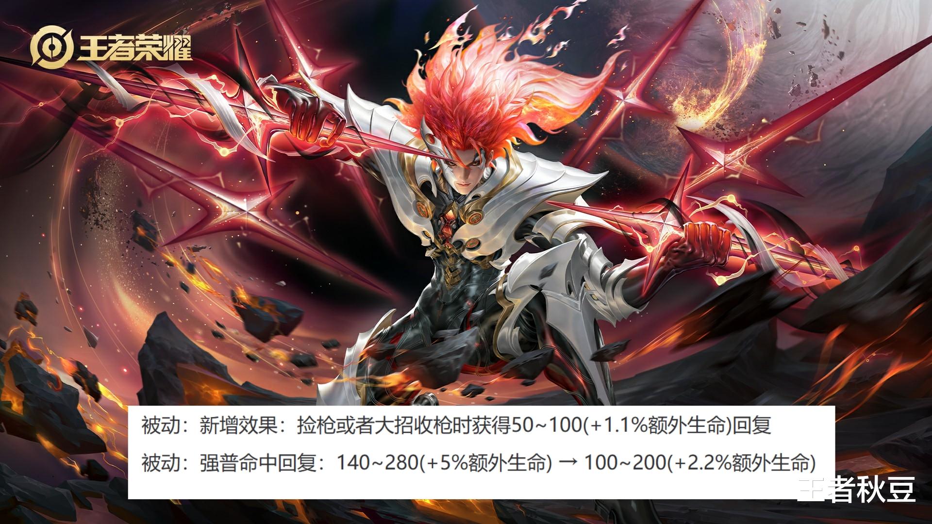 马超被动新增效果,捡枪和大招收枪都能获得生命回复。作为平衡代价是强化普攻的生命回复减少40~80+2.8%额外生命。