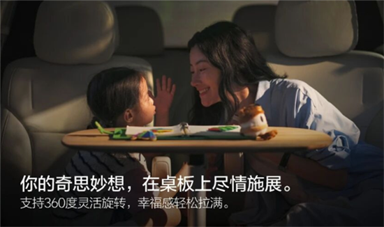 大桌板是一款官方独立配件,售价1699元,净重7公斤,采用模块化设计,由底座、支撑杆、旋转杆和桌面板四部分组成,不使用时可分体收纳在后备箱盖板下的专属沉坑中,不占用车内空间。