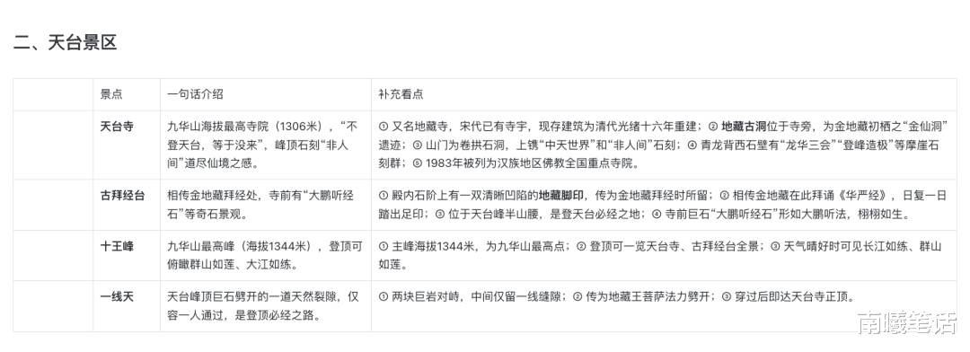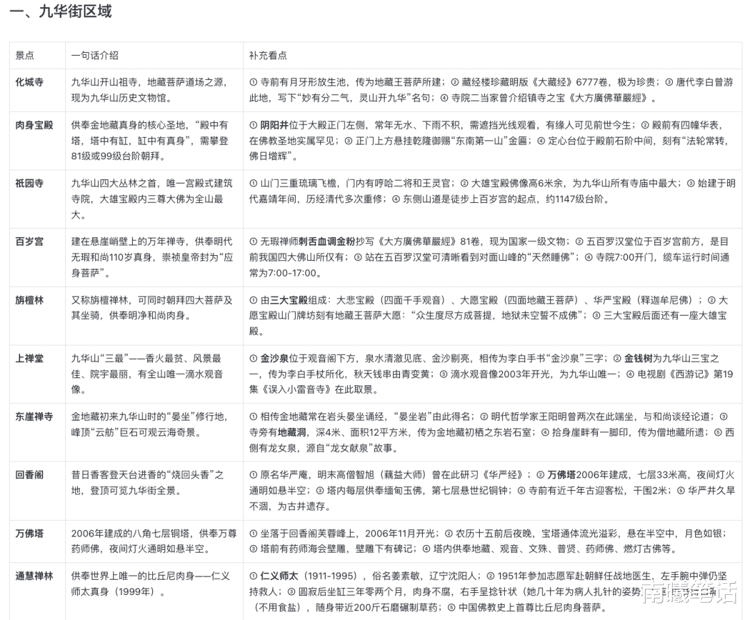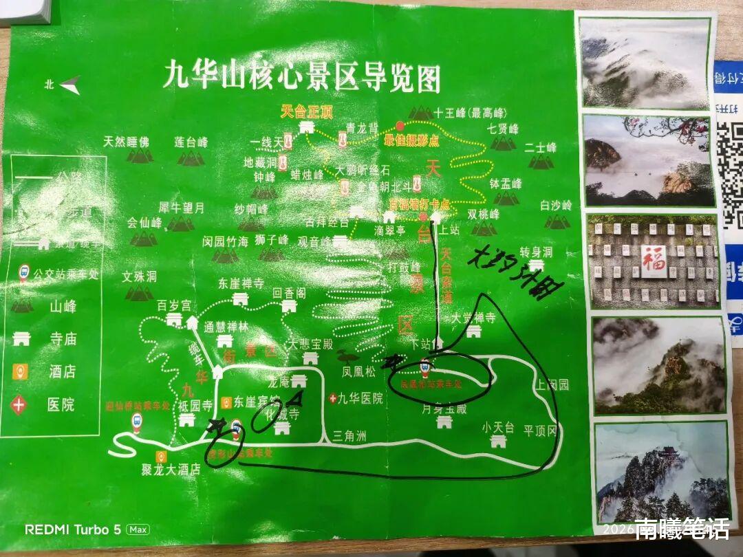 ▲本人 diy 路线,仅供参考哈:【九华街寺庙开门很早(4 点-5 点),所以起早去拜佛,然后就有时间去天台】