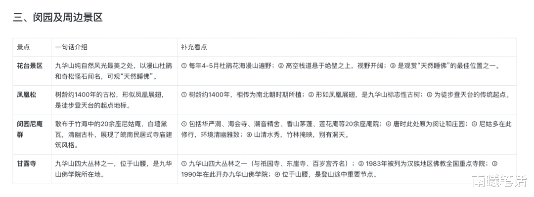 - 特色美食:九华素斋(祇园寺等有供应,人均20元起)、九华素饼(伴手礼首选)、黄精糕、石耳炒蛋。