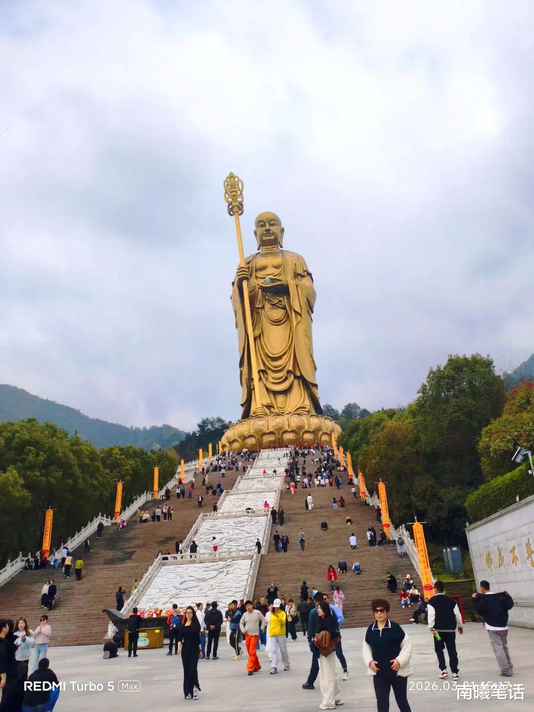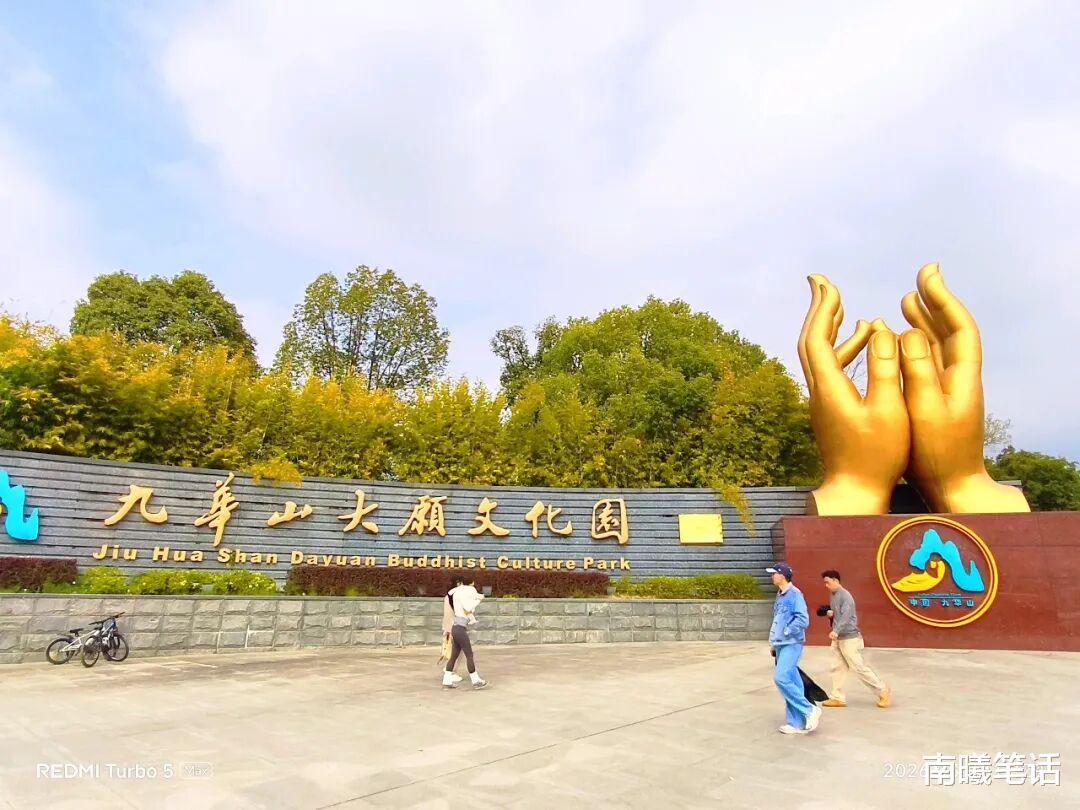 1、大愿文化园(99 米地藏圣像):从游客中心自己打车或者步行20 分钟(导航目的地),这边很大,你要留出 2-3 个小时。可以近距离观看地藏铜像,拍照,圣像下面一层右下角进入天台拜佛脚,触摸佛脚。逛完以后去入口方向右手边凭票可以坐车去九华街迎仙桥(也就是九华山景区入口);