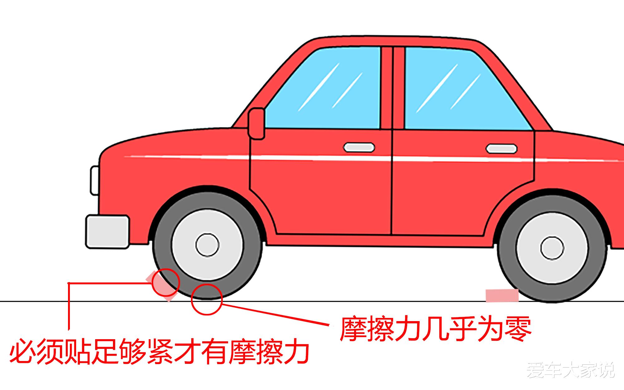 但汽车只要往前一走,驱动轮就离地,地面没摩擦力了,无法支持汽车继续往前走。再加上从动轮也被砖头顶着,增加了阻力,所以汽车根本没办法压紧砖头,于是就只能原地打滑了。